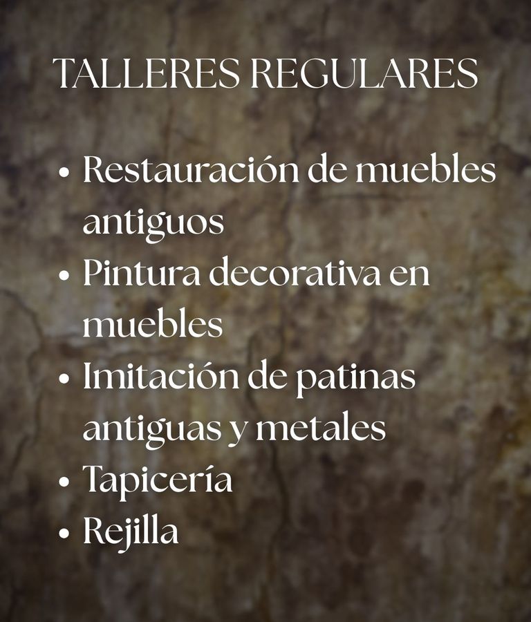 Talleres presenciales regulares, martes y miércoles a partir de las 16:00h. Trae tu mueble i lo restauramos juntos paso a paso.